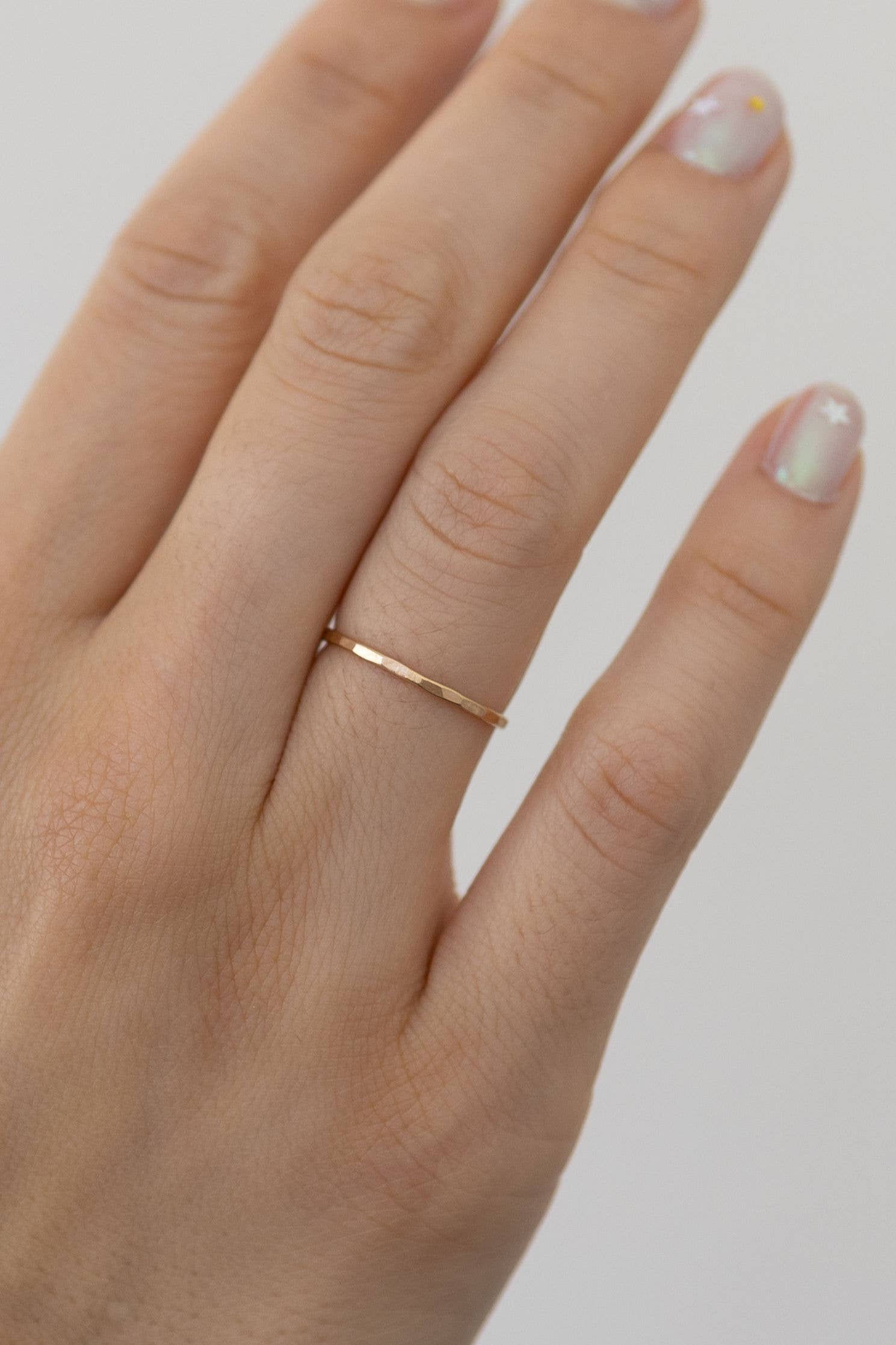 This dainty hammered stacking ring has an organic hammered look that sparkles in the light. Made from 14/20 Gold-Filled, it is hypoallergenic, and water/tarnish resistant. This ring can be worn on its own, in multiples, or paired with an existing stack.