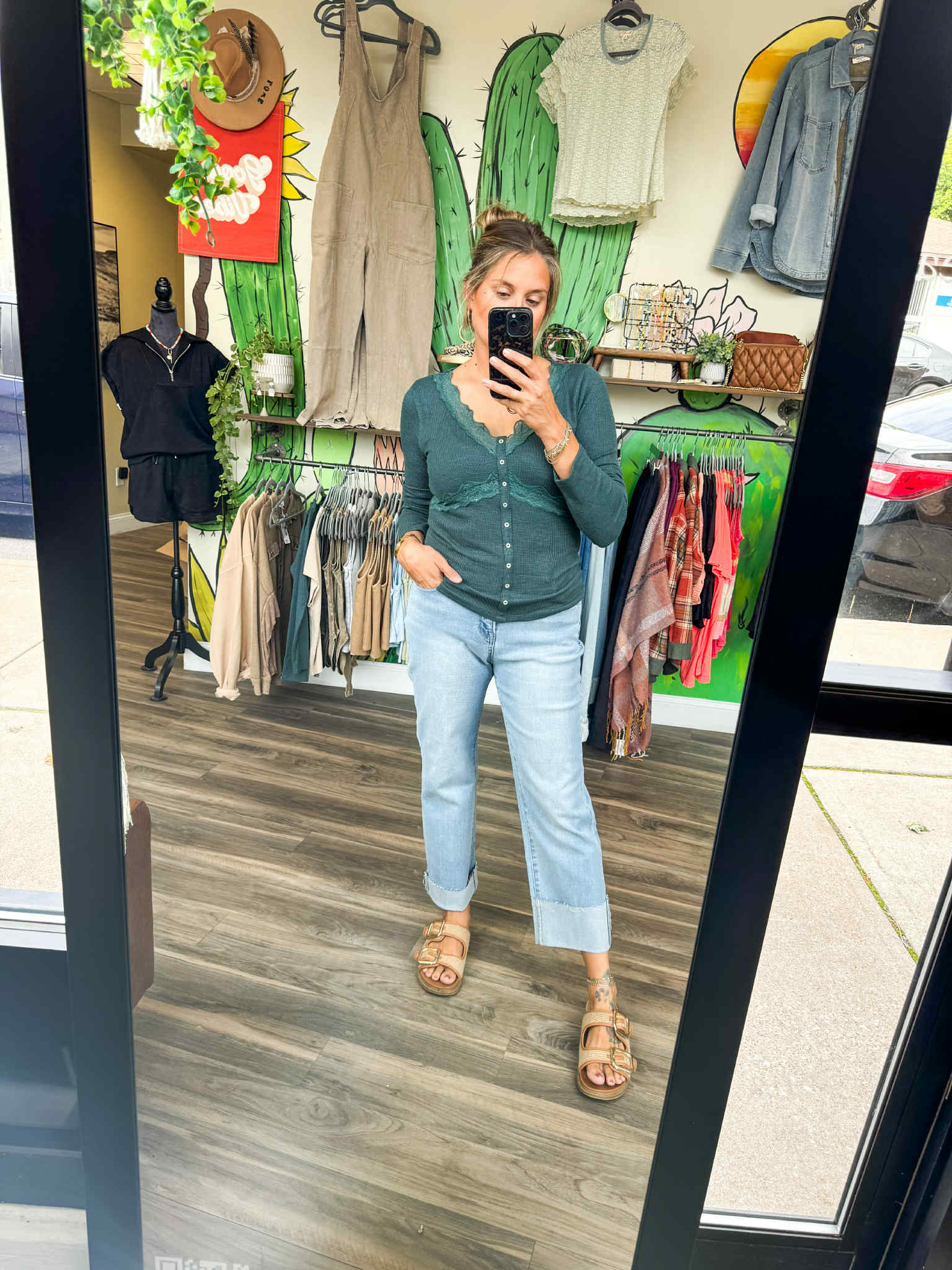 Elevate your cozy style with the Lace Trim Detailed Long Sleeve Rib Top. Soft ribbed fabric hugs your silhouette while delicate lace trims add a touch of flirty charm. Whether layered or worn solo, this playful piece adds a sweet and stylish twist to any outfit.