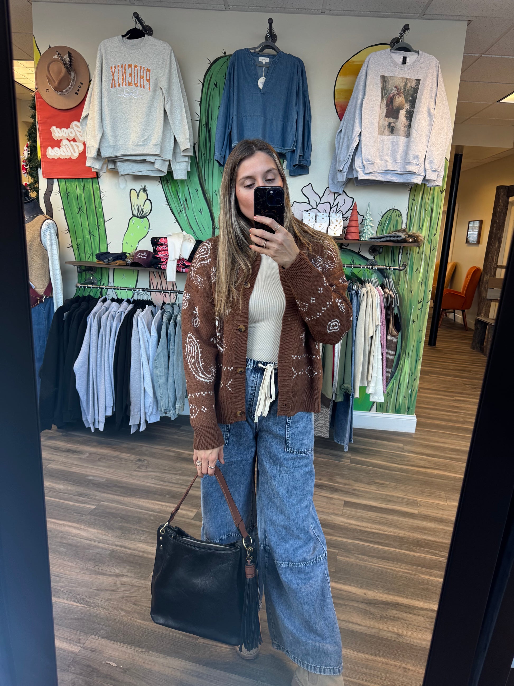 Wrap yourself in cozy vibes with the Chocolate Paisley Pattern Cardigan! Its relaxed fit and buttery soft feel make it your go-to for comfort, while the rich, seasonal chocolate hue adds a stylish pop to any outfit. Perfect for those days when you want to look cute but feel extra comfy!