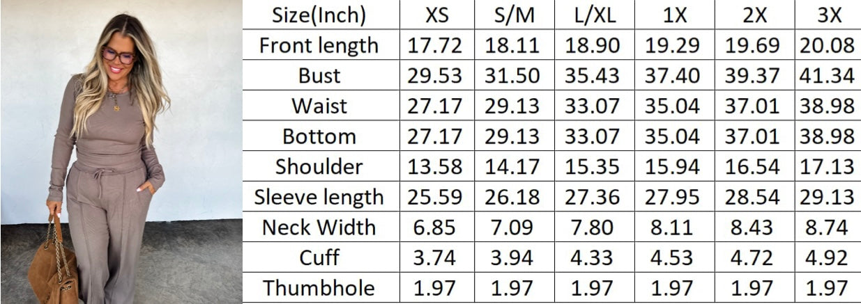 These sleek ribbed fabric lounge sets combine comfort and effortless style. The cute top features flattering side ruching, and long sleeve with thumbholes. Bottoms are relaxed fit with working drawstring and wide-legs. Pair this cute set with sneakers or slides for an easy, put-together look that’s as comfortable as it is chic.