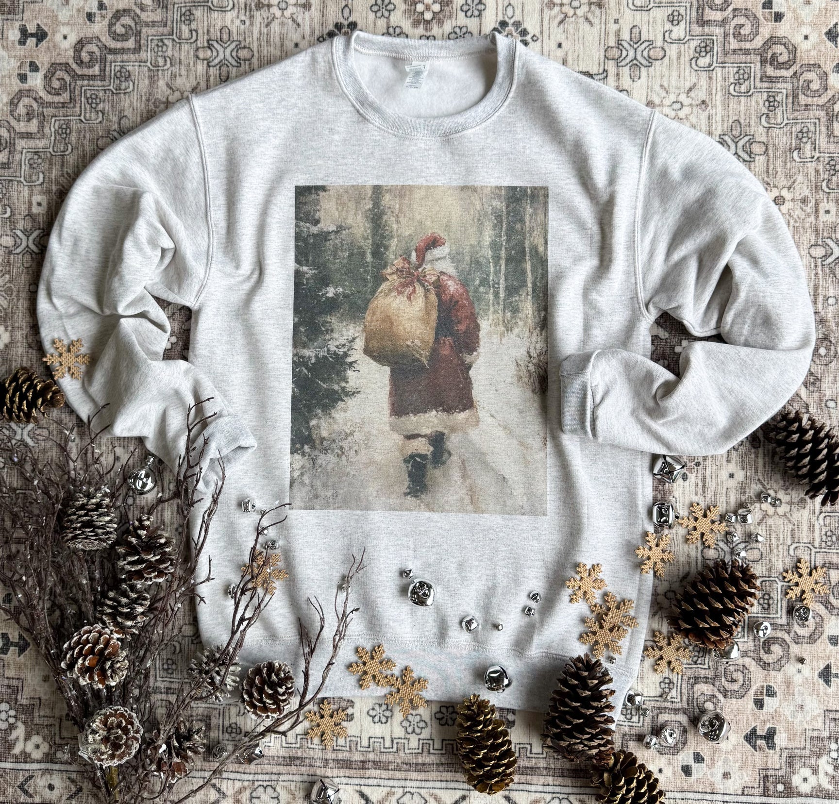 Wrap yourself in nostalgia with this cozy sweatshirt featuring a charming vintage Santa scene. The relaxed fit makes it perfect for lounging, holiday gatherings, or casual everyday wear. With its old-fashioned aesthetic and playful holiday spirit, this piece brings that warm, retro Christmas magic to your wardrobe. Soft, comfortable, and undeniably festive—your new seasonal favorite awaits.